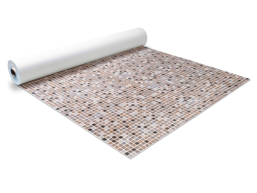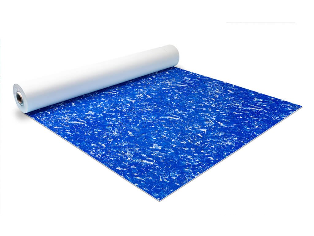 šířka 1,65 m, tloušťka 1,5 mm, délka role 25 m, balení 41,25 m², výztužná vložka z PES tkaniny, povrch s mramorovým vzorem.